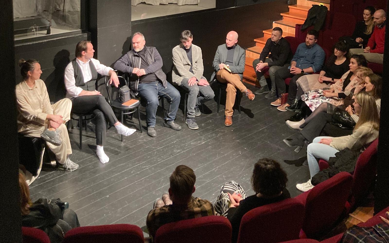 Pri príprave inscenácie Zmeškané rozhovory (2024) prizvalo Divadlo Jána Palárika v Trnave k spolupráci aj Katedru filozofie FF TU v Trnave. Jedna z častí predstavenia bola venovaná Platónovým dialógom a sókratovskej filozofii. Režisér Rastislav Ballek v spolupráci s naším kolegom Michalom Zvaríkom zapojil do projektu aj študentov filozofie, ktorí k vybraným pasážam Platónových textov napísali vlastné eseje. Tie sa stali súčasťou tvorivého procesu inscenácie. Po predstaveniach nasledovali diskusie s publikom. Filozofia tu opäť vstupovala do živého dialógu s divákmi rôznych generácií a skúseností. Aj vďaka divadlu sa tak filozofické idey dostali von z akademického prostredia a stali sa súčasťou verejnej reflexie. Sme radi, že filozofia môže prispievať ku kultivácii kritického myslenia aj prostredníctvom spolupráce s Divadlom Jána Palárika v Trnave.