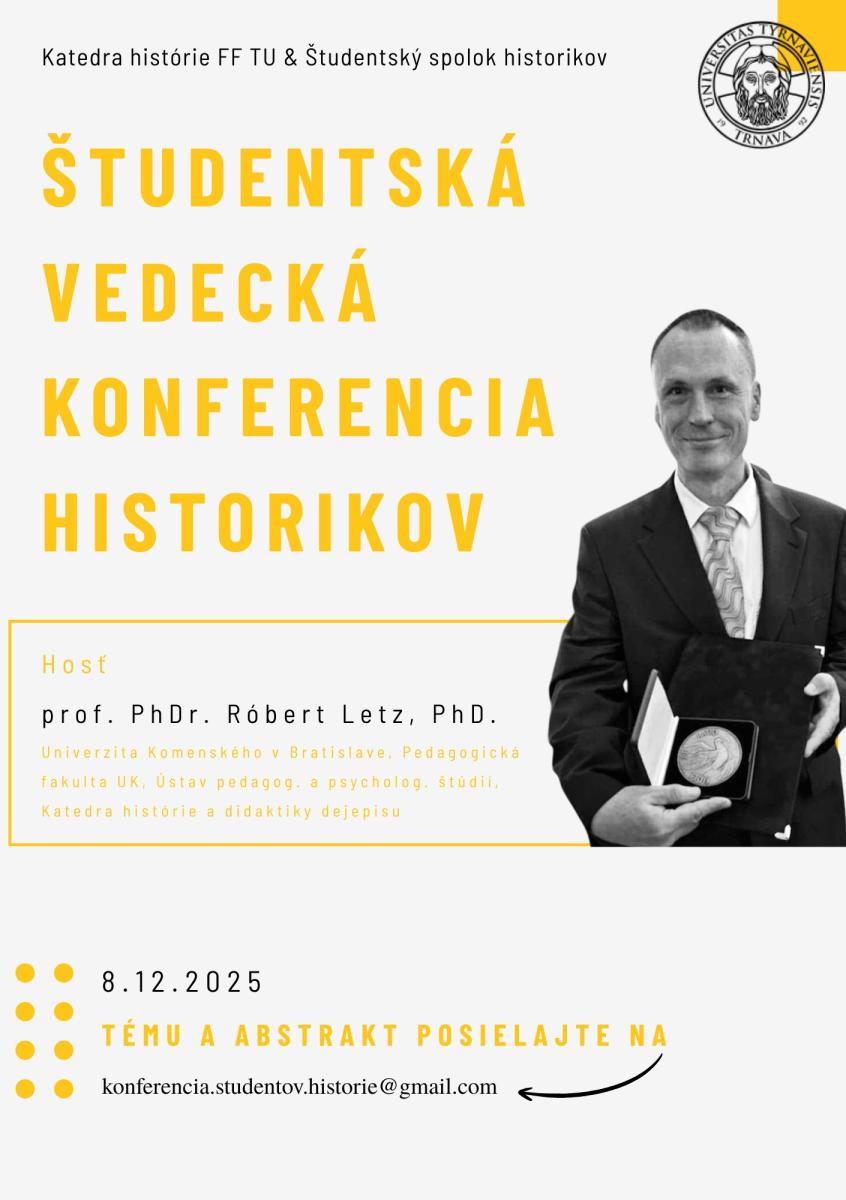 Hosťom na konferencii bude renomovaný slovenský historik prof. Róbert Letz z Katedra histórie a didaktiky dejepisu PdF UK Bratislava.