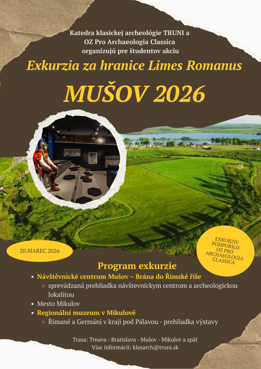 Katedra klasickej archeológie a OZ Pro Archaeologia Classica organizujú 20.3.2026 jednodňovú exkurziu zameranú na významné náleziská za hranicami Rímskej ríše.