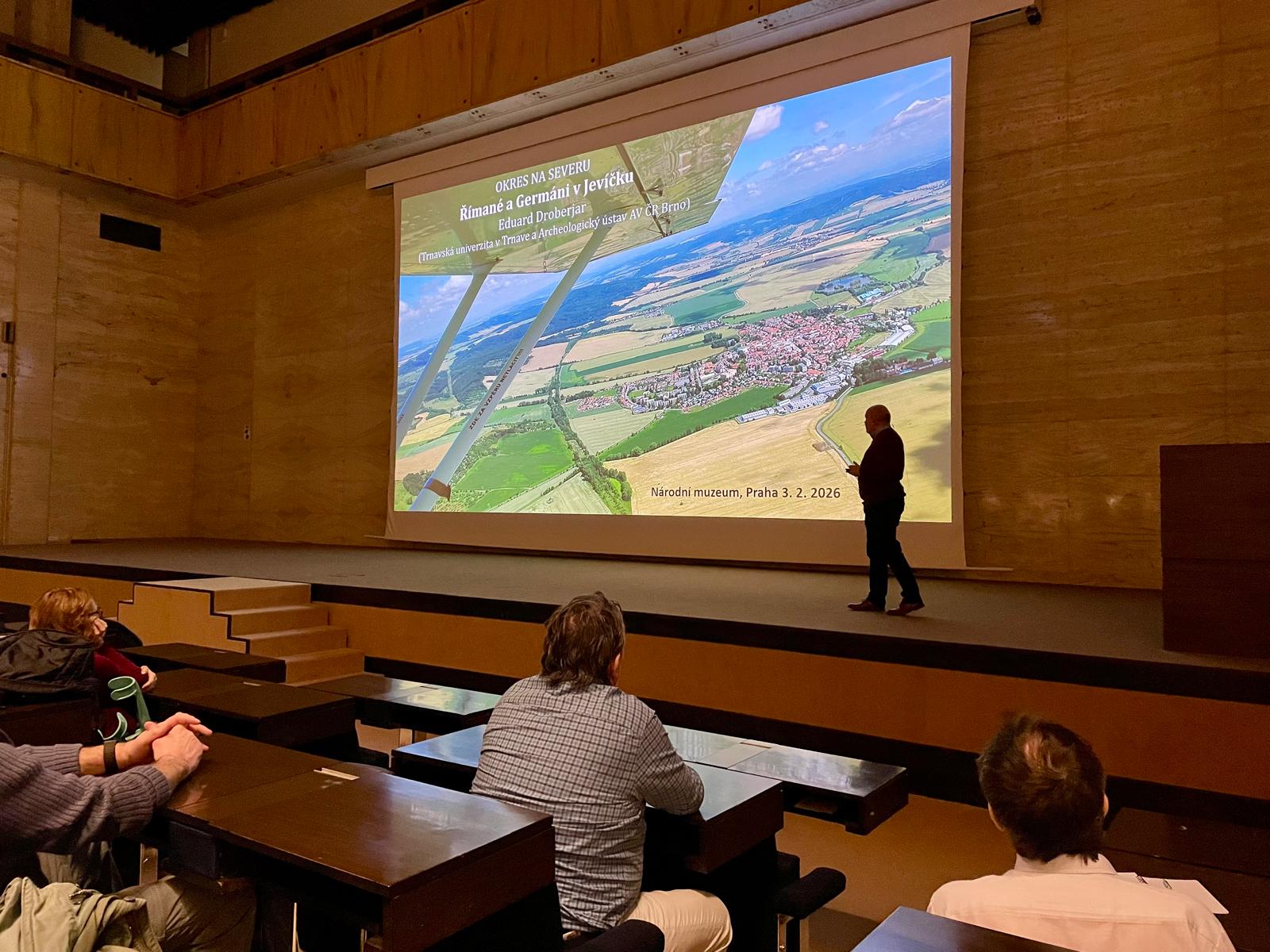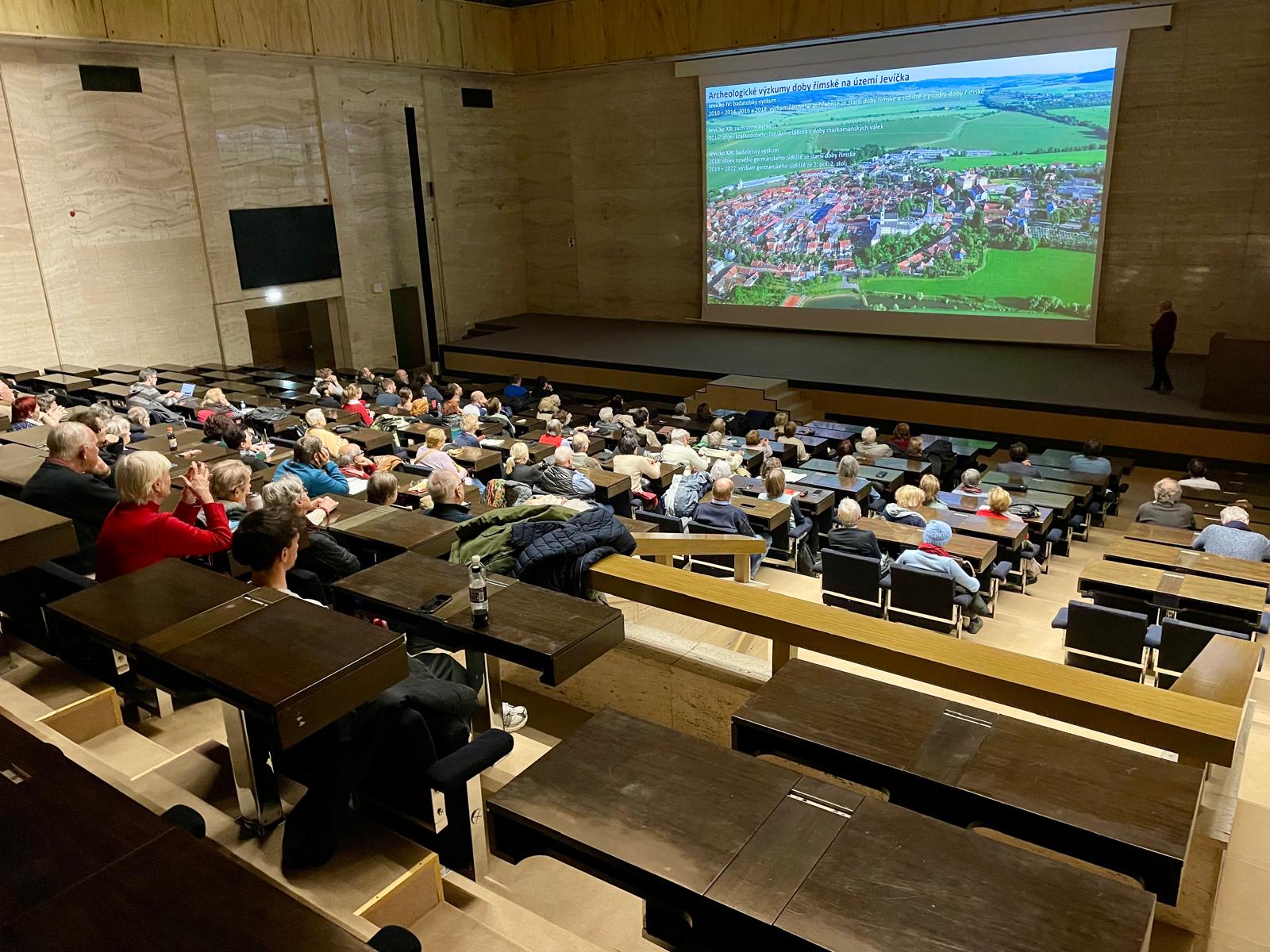 Prednáška s názvom "Okres na severu. Římané a Germáni v Jevíčku" sa zaoberala rímsko-germánskymi vzťahmi v období markomanských vojen za vlády filozofa na tróne – rímskeho cisára Marka Aurélia. Osobitné miesto v tejto časti starovekých dejín malo aj Jevíčko, ktoré sa nachádzalo hlboko v barbariku. Práve až sem – najsevernejšie od hraníc Impéria – dorazili rímske vojská. Miestne germánske obyvateľstvo tak bolo na sklonku rozsiahleho vojnového konfliktu v 70. rokoch 2. storočia výrazne ovplyvnené vyspelou antickou civilizáciou. To, čo o týchto udalostiach vieme na základe doterajších archeologických výskumov a akú úlohu v nich zohrávalo Jevíčko, sa poslucháči dozvedeli z nového uhla pohľadu.